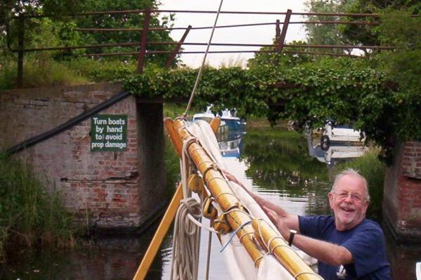 We're turned round and ready to head back down Waxham New Cut. David is clearly enjoying himself. 9th June 2005.