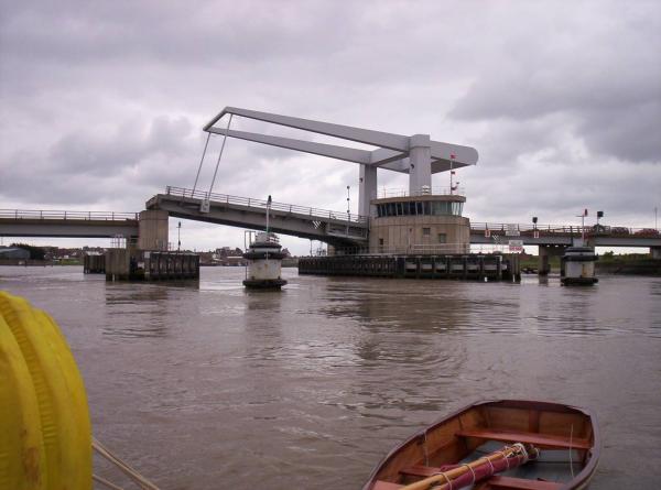 The bridge has almost closed as we head across Breydon Water. 11th June 2005.